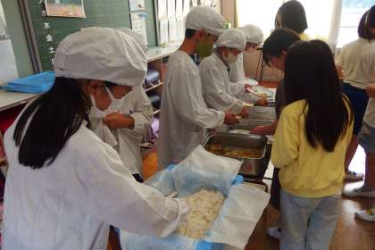 給食の配膳の様子です。