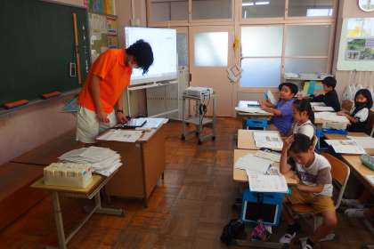 2年生の算数の授業です。 タブレットからスクリーンに提示される問題を解いていました。