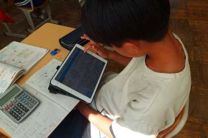 タブレットのアプリに解法の途中経過をそれぞれが書き込んでいました。