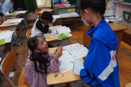 10月3日の東広瀬小学校 公開日 2024/10/05 更新日 2024/10/05 活動の様子 3年生の算数の授業です。 グループごとに話し合いの場を持ち、解き方を探っていました。 それぞれの考えを共有して、より深い協働的な学びを実現しようとしていました。
