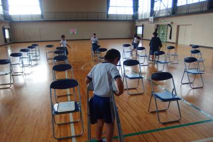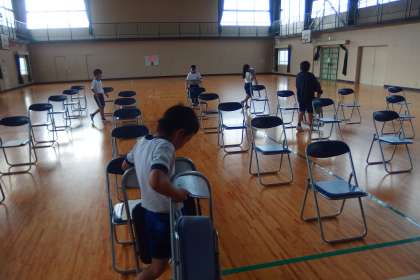 午後の就学時健康診断のために、4年生がイス並べを手伝ってくれました。