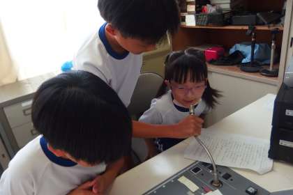 1年生クイズでインタビューしているところです。
