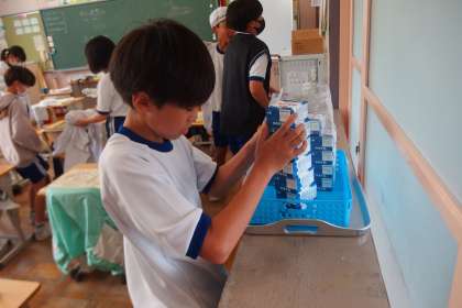給食の配膳の様子です。