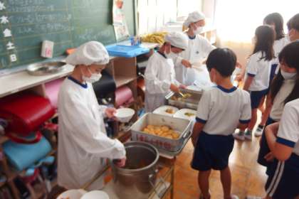 給食の配膳の様子です。