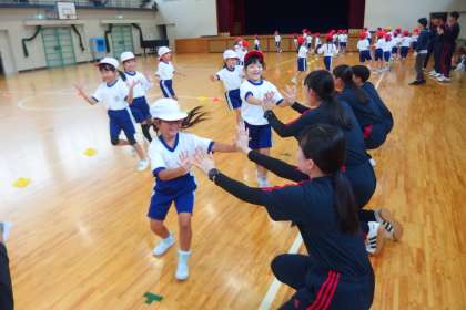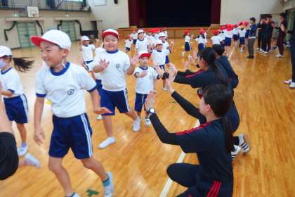タブレットから流れるメロディーに合わせて踊り、笑顔いっぱいの振り付けを心がけていました。