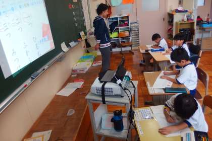 デジタル教科書のお手本を見ながら、ていねいに練習をしていました。