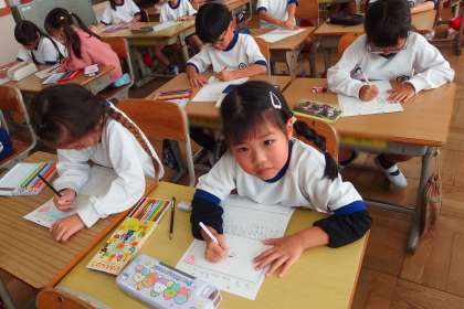 交流活動を行った萩野小学校にお礼の手紙を書いています。