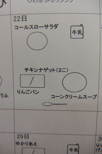10月22日の給食の献立です・・・が、今日はお弁当だったので、食べることができなかった幻のメニューです。