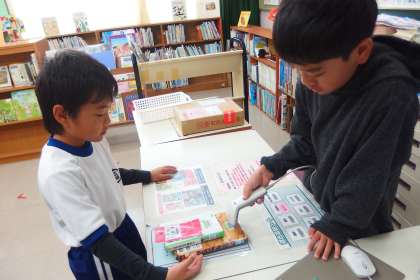 図書委員がパソコンを操作して貸し出し手続きをしてくれています。
