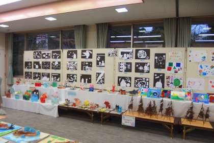 石野交流館ふれあいまつりアート展のために、本校ブースの展示の設営を行いました。