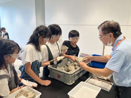 化石発掘体験をしています。