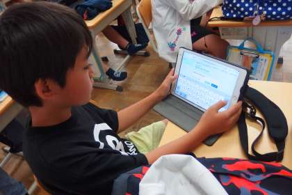 タブレットの気づきメモを使って意見を共有しています。