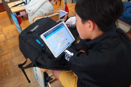 翌週の生活のめあてを考えている6年生です。 タブレットの気づきメモを使って意見を共有しています。