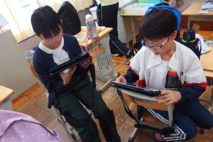 タブレットの気づきメモを使って意見を共有しています。