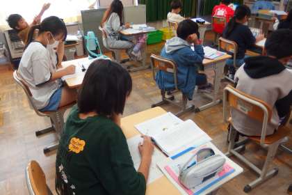 5年生の国語の授業です。 指導者用デジタル教科書が読み上げる音声を聞いていました。