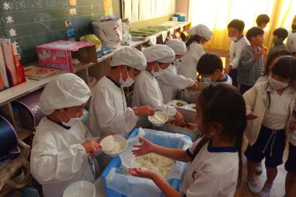 給食の配膳の様子です。
