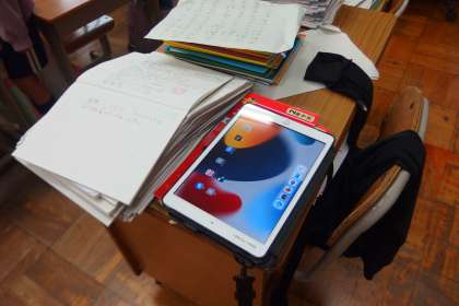 10月28日の東広瀬小学校 2年生の 朝の会のときの 教卓の上です  担任の先生は タブレットのコミュニケーションアプリで 連絡を確認して 子どもたちに 伝えています 先生方は ICT機器を上手に活用して 授業や活動を 効率的に進めようとしています その結果 子どもたちと接する時間を 増やすことができています