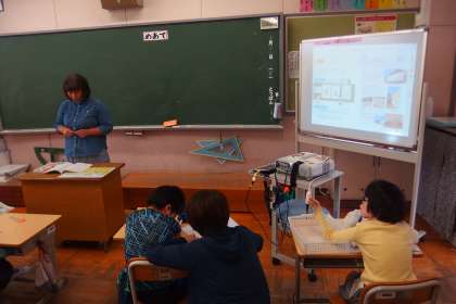 3年生の理科の授業です。 スクリーンに映し出されているのはデジタル教科書です。