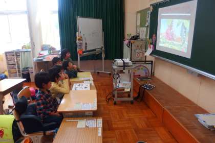 自立活動の時間です。 タブレットから流している動画を、ものすごく熱心に集中してみていました。
