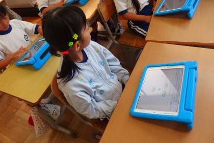 デジタルドリル(Qubena)に取り組む1年生です。