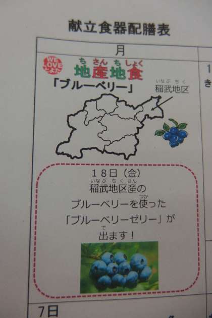 10月18日の給食にブルーベリーゼリーが出ました。