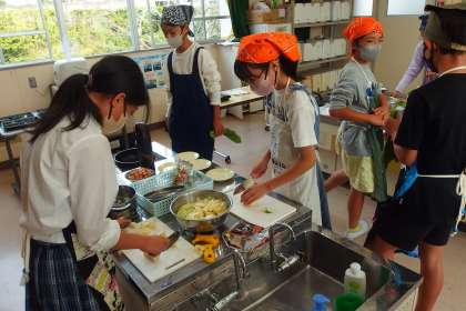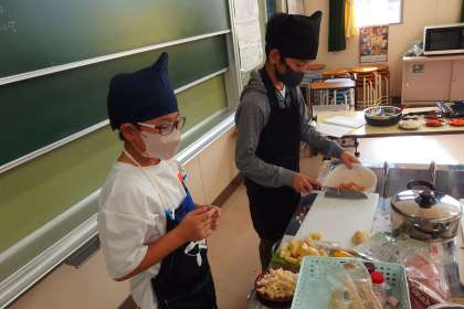 6年生の家庭科の授業です。 調理実習でした。