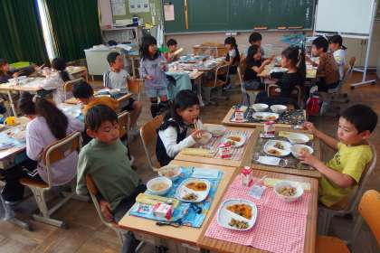 2年生の給食の会食時間の様子です。