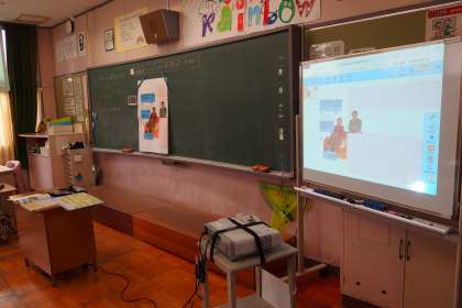 4年生の社会の授業です。 デジタル教科書と発表ノートを組み合わせて設問が作られています。