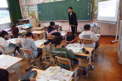 6年生の社会の授業です。 スクリーンに映っているのはデジタル教科書です。