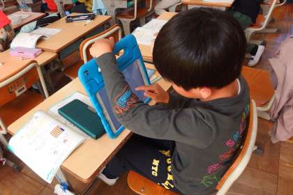 デジタルドリル(Qubena)に取り組む2年生です。