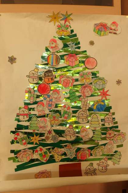 2年生がALTの先生といっしょに作ったクリスマスツリーです。 ちょっと気が早いですが・・・