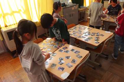 今週木曜日の校内カルタ大会に向けて、石野カルタの練習に励む2年生です。