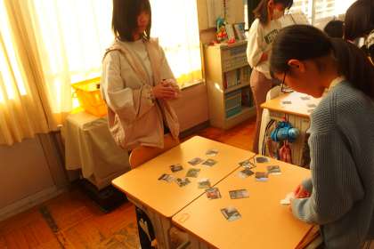 今週木曜日の校内カルタ大会に向けて、石野カルタの練習に励む6年生です。