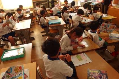 1年生の国語の授業です。 新しい教材をもらいました。