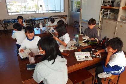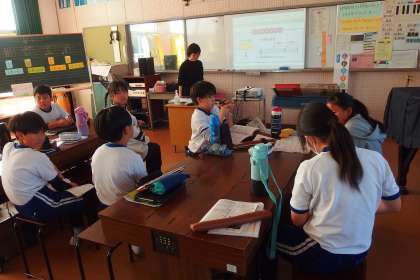5年生の音楽の授業です。 スクリーンに映っているのはデジタル教科書です。