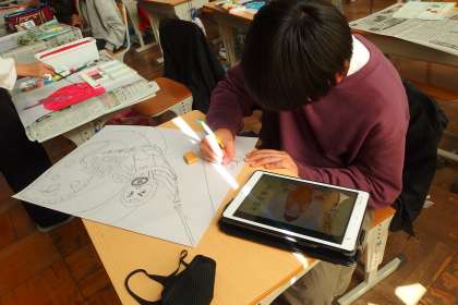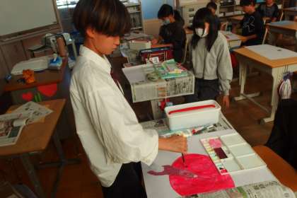 11月13日の東広瀬小学校 公開日 2024/11/17 更新日 2024/11/17 活動の様子 6年生の図工の授業です。 読書感想画を描いています。 タブレットを参考に見ながら進めている子もいました。