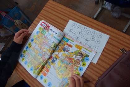 4年生の外国語活動の授業です。 デジタル教科書の英語音声が大活躍です。