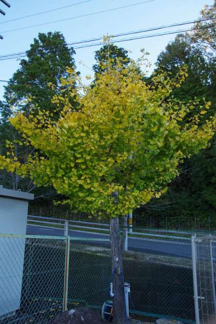 正門横のイチョウの木の葉がどんどん黄色に変わってきています。