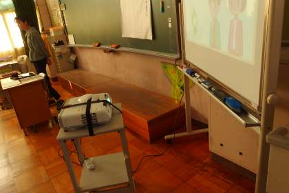 4年生の国語の授業です。 タブレット(デジタル教科書)から流す音声で聞き取りの練習をしていました。