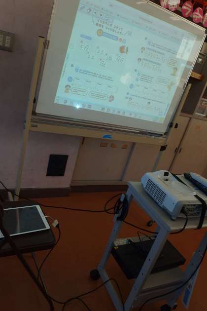 2年生の音楽の授業です。 デジタル教科書の内容を見て、次の活動の確認をしています。