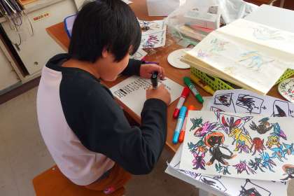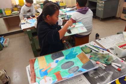 5年生の図工の授業です。 読書感想画を描いています。