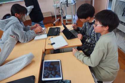 11月19日の東広瀬小学校 公開日 2024/11/22 更新日 2024/11/22 活動の様子 本校では探求学習を進めていく一環で様々な発表活動に力を入れています。 来週のプレゼンテーションに向けて、タブレットにまとめたことを話し合っています。 これらの取り組みが協働的な学びにつながっていくことを期待しています。