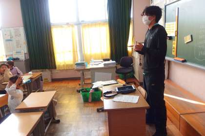 2年生の朝の会の様子です。 担任の先生はタブレットで確認しながら連絡を伝えています。