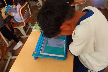 デジタルドリル(Qubena)に取り組んでいる3年生です。