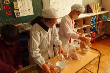 給食の配膳の様子です。
