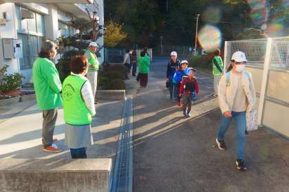 民生児童委員のみなさんが朝のあいさつ運動を実施してくれました。