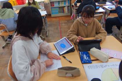 6年生の総合的な学習の時間です。 パワーポイントを使って発表原稿を作成しています。
