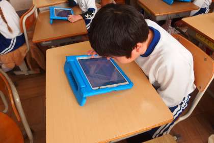 タブレットからアンケート(Forms)に答えている1年生です。