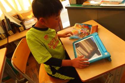デジタルドリル(Qubena)に取り組む3年生です。