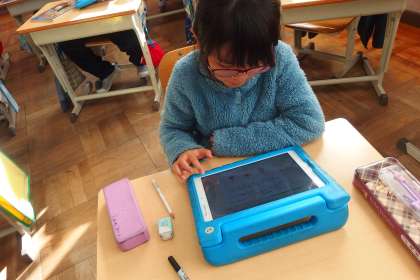 デジタルドリル(Qubena)に取り組む3年生です。